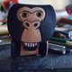 可爱露齿黑猩猩纯牛皮钥匙圈- 可刻名字
