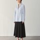 以实穿性和结构感为导向的基础长裙。采用顺滑垂坠的羊毛混纺面料,结合斜切拼接与非对称百褶,视觉上拉长比例,活动时呈现自然的起伏律动。
