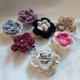花直径在4.5~5.5cm间 每件都是孤品。 五金零件如图二 是可以当造型发饰 或夹翻领或包包~~都很大方美丽 如蒙青睐~请直接截屏画记号给我们为您预留