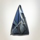 以不同深浅的牛仔布袋拼成一个三角布袋,每个手提袋均经过精心制作,拥有独特的拼布细节,确保每件作品皆与众不同。
