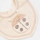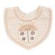 半立体のてんとうむしと、まわりの太ステッチがポイントになっているかわいいスタイ。普段使いに便利な小さめサイズです。
