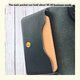 副隔层正面有一个带有雕花皮鞋风格孔眼的口袋,此风格常见于皮鞋。在按扣内侧附有一层薄皮革以提供保护。然而,将此隔层作为名片夹可能会留下金属零件的压痕,因此建议在不使用隔板时将卡片存放在此处。