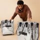 浩肯包由特殊的记忆织物制成,即便没装东西,也能直挺站立不倒塌。