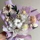 此款花束整体是使用索拉花搭配永生花材与干燥花素材混合设计