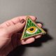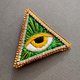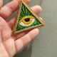 三角形邪眼胸针,手工串珠胸针,现代胸针,女士刺绣胸针,女式胸针,装饰艺术胸针,刺绣珠宝,绿色奇迹胸针,金色邪眼胸针,祖母绿胸针,哥哥眼礼物,天体魔法别针