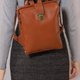 JULIE 小号 焦糖色 经典软牛皮 双层 黄铜卡扣 后背包