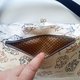 脸部图案以咖啡色和绿色绘制,因此内衬布料也选用了搭配的淡褐色圆点图案。