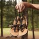 女式手工编织平绳凉鞋 Slingwind 黑色软木绳凉鞋