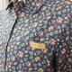 衬衫版型适中,选用纯棉小碎花面料增加视觉层次,胸前小皮标装饰点缀、搭配同色木质纽扣,下摆本布绑带收口设计,可自由调节,袖口剪接罗纹布料较为别致,款式简约大方,适合日常休闲穿着。