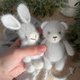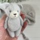 The bear toy is hand knitted from angora yarn, filled with hypoallergenic filler, eyes with plastic beads.