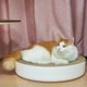 即使猫抓板用久淘汰掉了,圆形的猫窝一样很受猫咪欢迎。铺上被被就是最舒服的床。