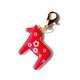 这是一款以瑞典代表性传统工艺品「达拉木马」(Dala Horse)为主题,并绘制上原创图案的包包挂件。
