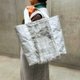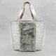 包款以压纹处理的银色特殊材质 Tyvek 为基底,中央点缀着毛感细致的意大利制环保毛,是一款极具个性的托特包。