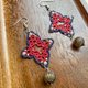 **这是一对手工制作的梭织耳环,以红色和蓝色为主色调,并饰有珠子。这款耳环独特而精美,适合任何场合穿戴。**