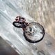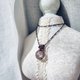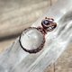 白水晶球与堇青石金属线编织吊坠,金属材质为纯铜线仿旧,整体尺寸(长x宽)为30x18mm。