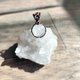 设计上顺着主石的体型做出可充分透光并且能360度转动的编织网,加上简洁的坠头与堇青石配石。水晶球们在不同背景与光源角度下都会不断变化,照片呈现的是我觉得最特别的那一面,但也很推荐在光源下每个角度都转动看看,或许能够找到属于你的那一面命定表情。