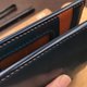 我们所有产品可看见的边缘都会经过处理。先经过基本的修正打磨,再反复地上色及抛光,直到光滑平整后打上一层蜡作保护。单是这个过程几乎占上整个制作时间的三分之一。颜色方面,我们一般都是选择与主体(封面)皮革颜色最贴近的作为默认。