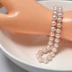 浙江山下湖是中国最大的淡水珍珠产地,出产产量占全世界产量的95%,期中不乏高品质的天然玫瑰色淡水珍珠,是为曼塔玫瑰。纱织小姐搜寻到6.5-8mm极光炫彩的天然淡水珍珠,近正圆微瑕,与s925银14k注金的搭扣形成拉直约45cm的长款项链。s925银14k注金的圆圈扣设计给这款项链带来舒适感,而微微泛着天然粉色光芒的极光炫彩珍珠更是将高级感拉满,简直可以媲美akoya。搭配随意轻松,轻奢优雅,让人感到你的心温柔娴静,让你闪闪发光。展现出珍珠女主人的极尽优雅,是具有性价比又美观实用的珍珠珍品。