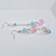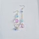 <附有圆形圈,可爱粉蓝色的月光石与玻璃珠非对称式耳环>