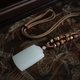 天然和田玉羊脂玉无事牌吊坠,冰底羊脂玉,脂份细腻,牌型精致,搭配精美沉香木手工绳,坠尺寸约35.8×22.2×8mm