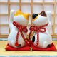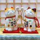 两只招财猫都高高举起右爪✋,象征「金运招徕」(Kin’un Shōrai)