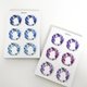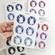 浪漫花圈系列装饰贴纸 材质:透明 PET 贴纸 张数:共 8 张,每种颜色 2 张,共 4 种颜色 尺寸:13.5 x 10.5 厘米 *裁切时可能会有 5mm 的误差。 颜色:蓝色、黑色、紫色、粉红色