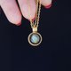 用纤细的包金线手工编织出精致的蕾丝框架,包裹一颗直径约10毫米的天然金曜石。金曜石在阳光下闪烁着明亮的金沙。金曜石能招财、辟邪,强力化解负能量,吊坠小巧、简约而不失个性,这款吊坠能为日常配饰,增添一抹独特的中性力量和金色光泽。
