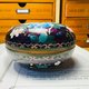 [物况]难得大型圆盒保存完整珍稀少见,有历史痕迹,胎体轻薄,闪耀紫色底釉布满掐丝花朵,最后在复上透明玻璃质感釉药,老工匠才有的繁复工艺,老件总有没拍到或没说明您却在意的地方,请多询问,非常乐意回答您的问题。