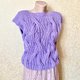 淡紫色針織羊毛背心。柔軟的女式吊帶背心。無袖短毛衣上衣