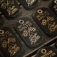 双面皆无染透处理,字体先以钢印压出厚度再烫金,加强其烫金的耐用度