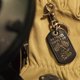 以骑士为出发点设计此款"Save Ride"烫金皮牌钥匙圈