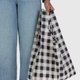 来自纽约的时尚环保袋品牌BAGGU,创办人与母亲一同发想了打版剪裁后布料不会浪费的袋型,于是折叠后宛如一片吐司般的baggu袋正式诞生。日渐成熟的BAGGU更开始有更多商品支线,设计出发点都以环保回收为概念佐以明亮有趣的印花。