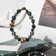 以深色系矿石为主轴,结合黄虎眼的行动力、水草玛瑙的平衡支持,搭配金曜石、钛赫兹与黑胆石所形成的防护能量,整体气场沉稳而有力量,适合日常配戴、工作场合与人生转换期。
