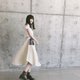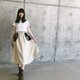 ▴裙子前后的剪裁呈现明显的弧形,侧面看前后的布料会有些微重叠,整体很活泼有朝气。走路、奔跑时裙子随风飘扬的线条很美。