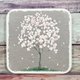 这款杯垫以木莲树的盛放姿态为灵感,描绘淡粉花瓣在灰雾色天空中缓缓飘落的意象,