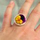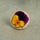 带有刺绣中提琴的手工戒指。 图案是我设计的,也是我绣的。 我在每幅刺绣图片中使用最大数量的颜色,使其更加逼真和丰富多彩。 这种独特的花朵由棉绣线绣在亚麻织物上。 细节: - 圆形是 20x20 毫米 (0,8x0,8" ); - 材质:黄铜环底座、棉线、亚麻布; - 戒指是可调节的。