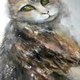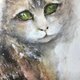 背景运用柔和的渲染和纹理效果,突显了猫咪毛皮的自然柔软感及其炯炯有神的绿色眼眸。画作右下角签署了艺术家的名字,这幅独一无二的作品将为任何室内空间带来温暖、魅力和宁静的氛围。