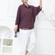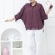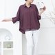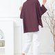 素面下摆拼薄纱雪纺上衣 / 暗红色 透气舒适,夏秋皆宜