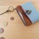 小钱包的正面设计了一个口袋不仅可以放五张以上的卡片,购物的发票跟纸钞分开放。