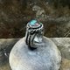三角银条中间搭配麻花的活围戒台 麻花松石旁边配两颗小星点缀 石头:湖北绿松石 材质:925银 尺寸:国际围13 (18mm) 可调整到国际围16号 备注: 如有可以调整尺寸方面请提前告知 每项作品制作上都会些许差异 制作时间手工备料制作 7日~21日