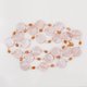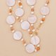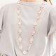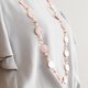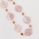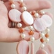 这款全串珠项链,以粉红贝壳、淡水珍珠与日长石,透过丝绸绳编织而成。