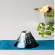 这是以日本第一高峰富士山为形象设计的纯锡制清酒杯,酒杯的青蓝色渐层与杯底保留的银色设计,呈现出覆雪的富士山样貌。这款酒杯在杯底也有富士山的造型,饮酒时还能欣赏富士山的雄壮之美。
