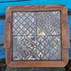 棕和绿色小木质方形托盘,装饰有 4 块手绘压克力木砖