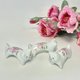 这是一对可爱的猫咪筷架。 长度约为 6.5 厘米,高度约为 3.5 厘米。 我们描绘了一只蓝眼睛的小猫,背上载着一束粉红玫瑰。