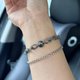质感超高的手链 男女都适合 双层设计更显层次感 很有个性 环环相扣冰透 中间黑冰平安扣黑中带绿 ❥ 整体尺寸 Full Size🍃: 14+4cm (可定制长短) 925银链&扣头
