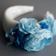 ✤ Padded halo headban is made out of high quality Italian velvet. Velvet occasion headband trimmed with baby blue and light ivory flowers and leaves covering the right side.