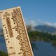 我们将这一百座高山的名字与高度,刻在原木制作的直尺上,方便我们去查询,希望透过这“台湾百岳一把尺”,拉近我们与台湾高山之间的距离。