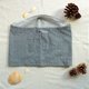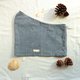 外层材质为带有圆点图案的灰色海军蓝(浅蓝色)棉布,接触脸部的内衬为薄而柔软的浅蓝色棉布,带有褶皱饰面。