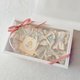 结合印花温柔、可爱的特点,融以本店镇店款之一的海军领蕾丝兜,设计出一套女宝专属弥月礼盒🩷