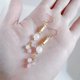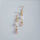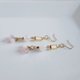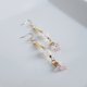 这款充满设计感的耳环,以俐落的长方形压克力饰框为主体,搭配着经过特殊处理、散发着柔和粉色光泽的裂纹水晶(人造水晶)。并巧妙地串联了两种尺寸较小的捷克琉璃珠,以及粉色水晶,随着配戴者的动作,在耳畔摇曳生姿,散发出迷人的魅力。